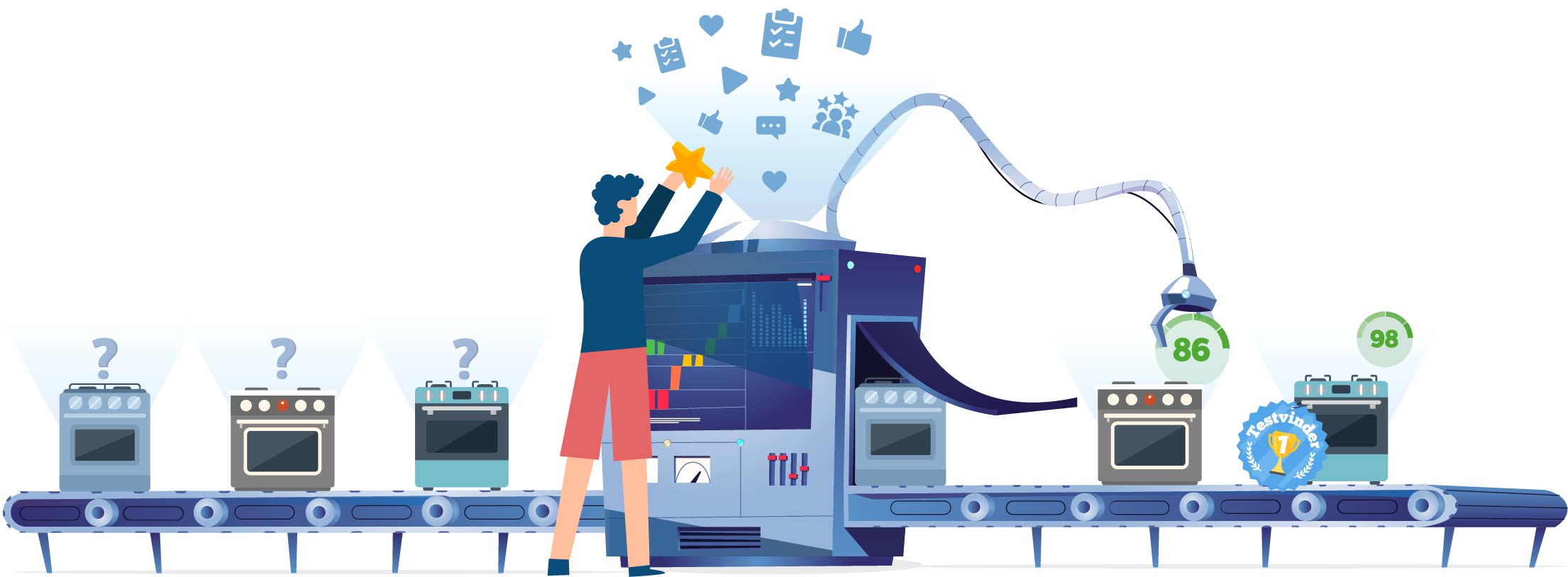 Vi har utvecklat en algoritm som automatiskt bedömer och rangordnar de 8 Electrolux produkterna, som presterar bäst i tester, hos experter och enligt 288 kundrecensioner.